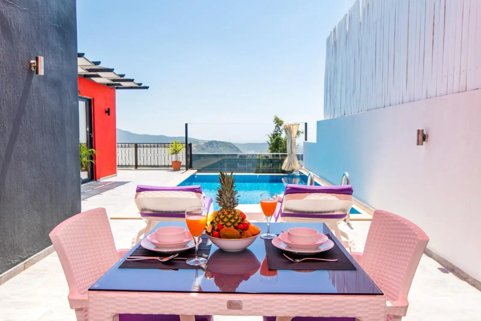 Kalkan Üzümlü bölgesinde bulunan Villa Güneş balayı konseptindedir. Villamız Dünyaca ünlü Kaputaş plajı, Patara plajı gibi tatil merkezlerine araçla sürüş mesafesindedir.